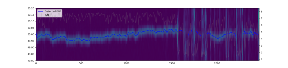 Das liegt auch darin begründet, dass die Harmonics stark in Amplitude abnehmen und die Netzfrequenz im Normalfall um die 50 Hz in einem +/- 20 mHz breiten Korridor, d.h. zwischen 49,98 und 50,02 Hz. schwankt. Darüber hinaus sind ENF-Einstreuungen bei Mobiltelefonen kaum zu erwarten, eher bei netzgebundenen Aufnahmegeräten. Studien zeigten auch, dass die Schwankungen der Netzfrequenz in einem spezifischen Power Grid überraschend konstant sind und damit weitgehend ortsunabhängig.